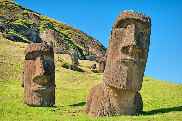 Easter Island’s famous figures– called moai – monumental statues carved between 500-800 years ago – are icons of this stunning island. Easter Island is the most remote human settlement in the world – and is rich in history and archeology.